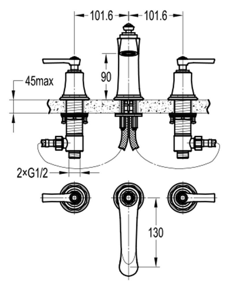 Смеситель для раковины Swedbe Terracotta Art 2503 на три отверстия бронза купить