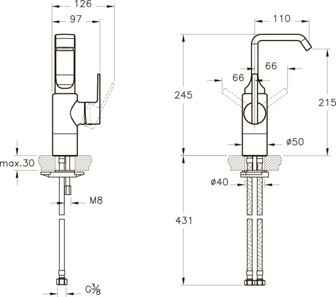 Высота смесителя:24.5