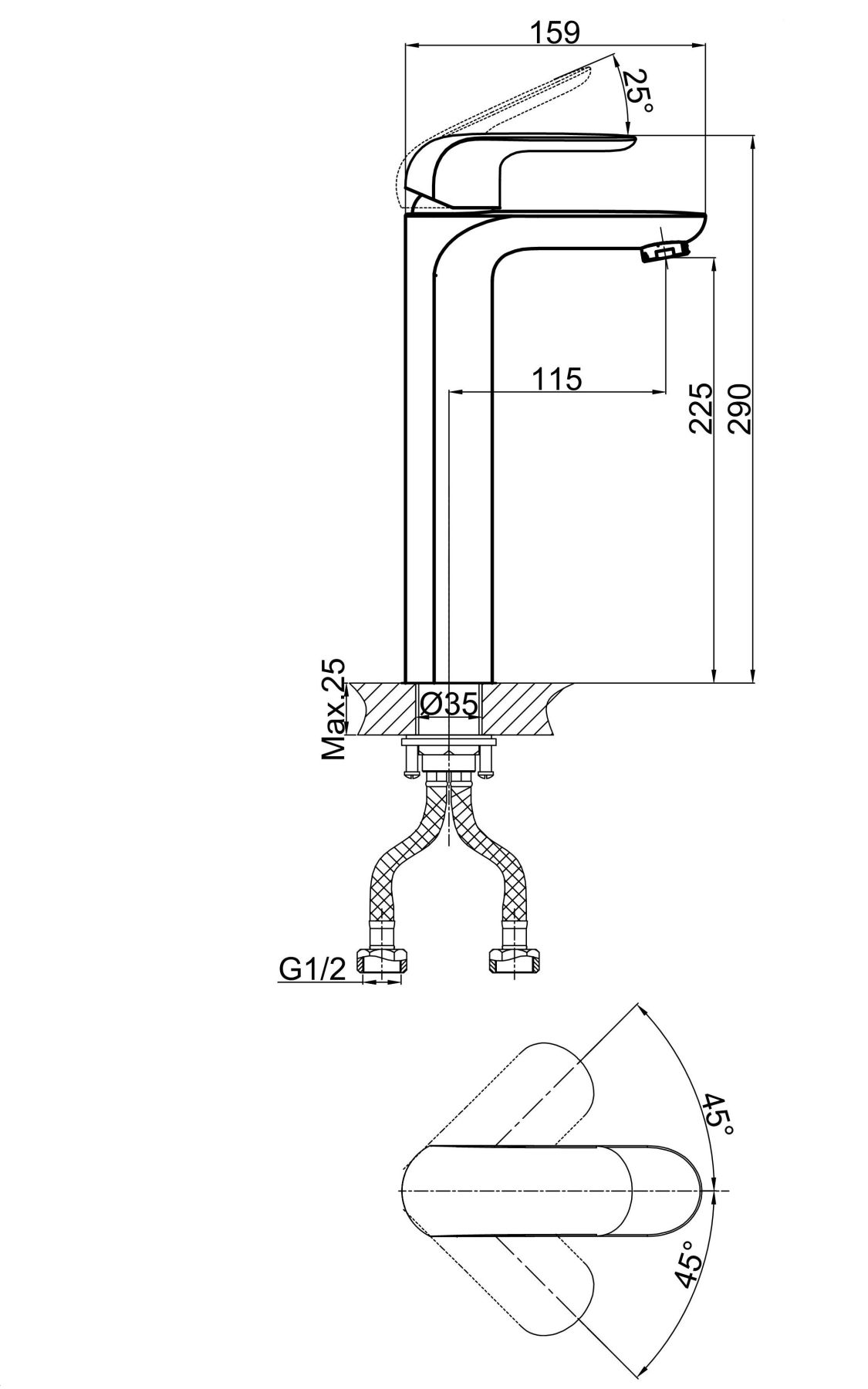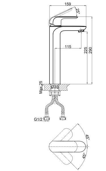 • Высота смесителя: