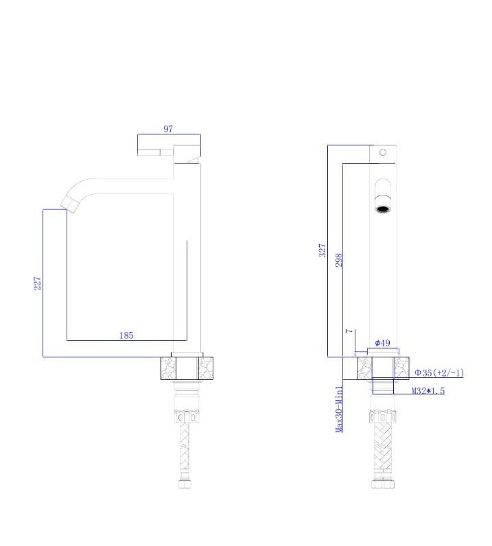 Смеситель для раковины RUSH Melos арт. SUS1101-12 с металлической ручкой изготовлен из нержавеющей стали SUS304 и имеет рычажное управление. В смеситель установлен картридж D-35 с керамическими пластинами. Высота смесителя 327мм. Излив литой неповоротный 185мм., высота излива до аэратора 227мм. Аэратор изготовлен из пластика с нержавеющим корпусом, угол наклона аэратора- 7 гр. В комплекте гибкая подводка с гайками 40 см - 2шт, универсальная присоединительная группа, фум-лента, индивидуальный пакет, паспорт, гарантийный талон.