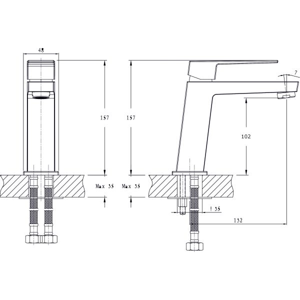 Смеситель для раковины RUSH арт.TR3625-11 с металлической ручкой из коллекции Thira изготовлен из высококачественной латуни и имеет рычажное управление. В смеситель установлен картридж D-25 с керамическими пластинами. Высота смесителя 157 мм. Излив литой неповоротный, высота излива до аэратора 132 мм. Аэратор изготовлен из пластика с нержавеющим корпусом, угол наклона аэратора- 7 гр. В комплекте гибкая подводка с латунными гайками 35 см - 2шт, универсальная присоединительная группа, фум-лента, индивидуальный пакет, паспорт, гарантийный талон.