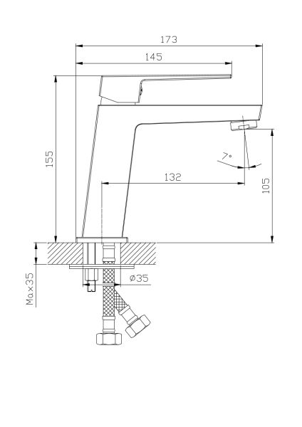 Смеситель для раковины RUSH арт. TR3635-12Black с металлической ручкой из коллекции Tira изготовлен из высококачественной латуни и имеет рычажное управление. В смеситель установлен Картридж с керамическими пластинами D-25мм . Высота смесителя 155мм. Излив не поворотный, 132м. Высота излива до аэратора 105мм, аэратор изготовлен из пластика с нержавеющим корпусом, угол наклона -7 гр. Универсальная присоединительная группа для установки на горизонтальную поверхность (шпилька), гибкая подводка с латунными гайками 35см - 2шт, фум-лента, индивидуальный пакет, паспорт, гарантийный талон.