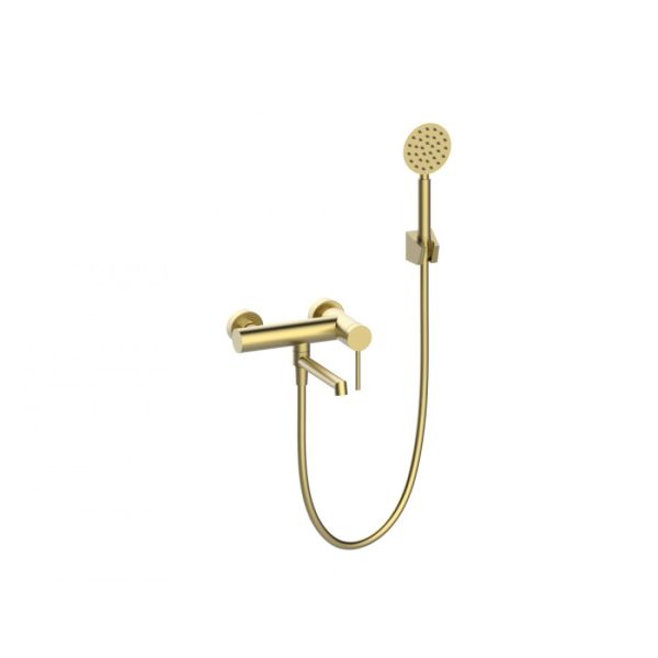 Смеситель для ванной с душем Vieir V463531-S короткий излив, нержавеющий стал матовое золото