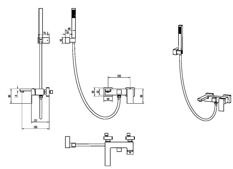 Смеситель для ванны Boheme Qubic с душевым гарнитуром. Характеристики: Цвет: брашированная бр... Подробнее