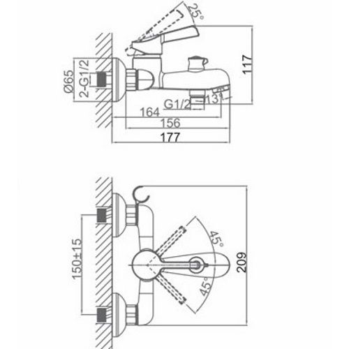 Смеситель для ванны DQ Rhein Schiller хром DA1463201 купить