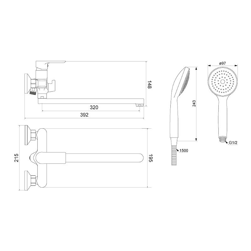 Диамтер ручного душа: 97 мм.