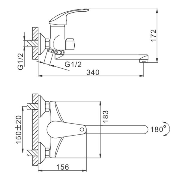 Способ монтажа:На два отверстия, Настенные