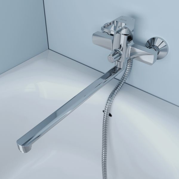 Смеситель для ванны Bild отличают уникальный дизайн ручки-петли с тонкой изящной рамкой и геометрические формы. Толщина рамки составляет всего 2 мм, при этом прочность ручки не снижается — она прослужит долгие годы. Без душевых аксессуаров в комплекте.