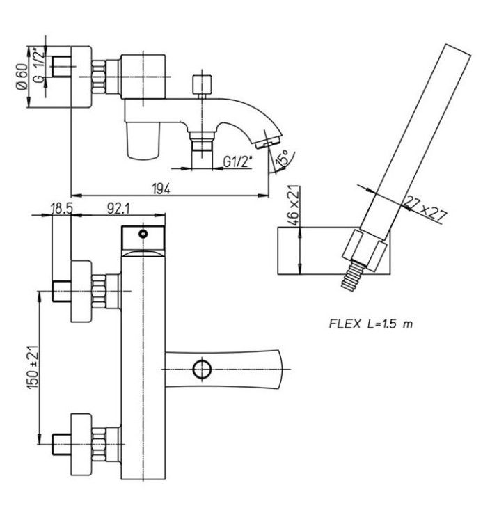 В комплект входит лейка для душа, шланг и держатель для лейки.