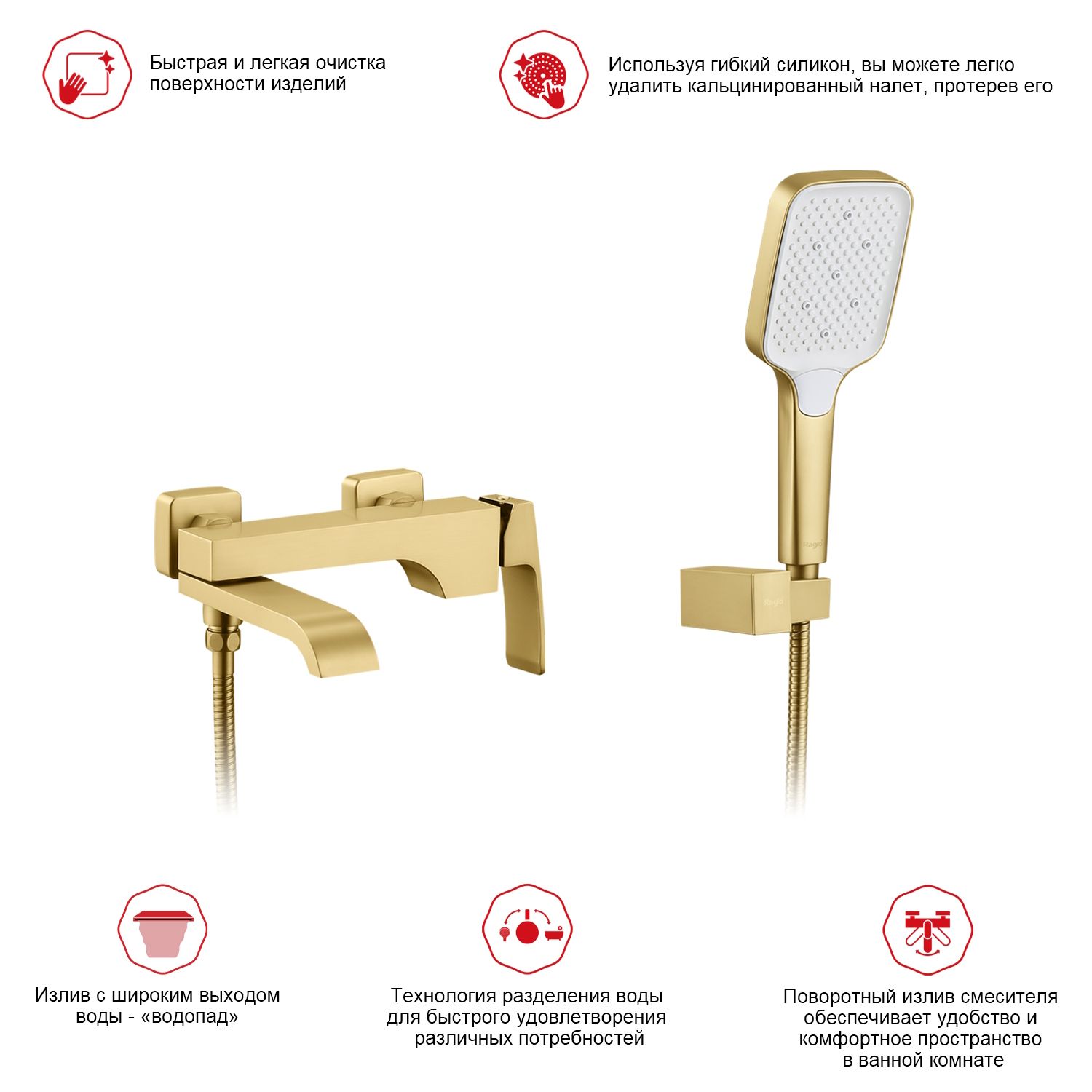 Смеситель для ванны Raglo R02.30.03 золотой сатин