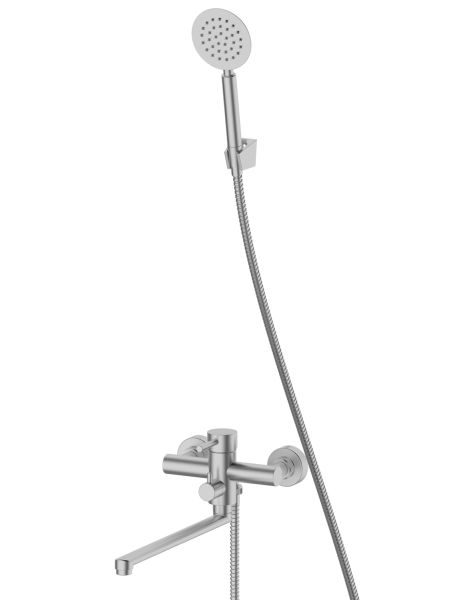 Смеситель для ванны RUSH Melos арт. SUS1101-51 c длинным поворотным изливом изготовлен из нержавеющей стали SUS304 и имеет рычажное управление. Излив изготовлен из нержавеющей стали. В смеситель установлен картридж D-35 с керамическими пластинами, а также дивертор (переключатель). Пластиковый аэратор с нержавеющим корпусом. В комплекте однорежимная душевая лейка и душевой шланг длиной 1,5м., держатель душевой лейки, фум-лента, индивидуальный пакет, паспорт, гарантийный талон.