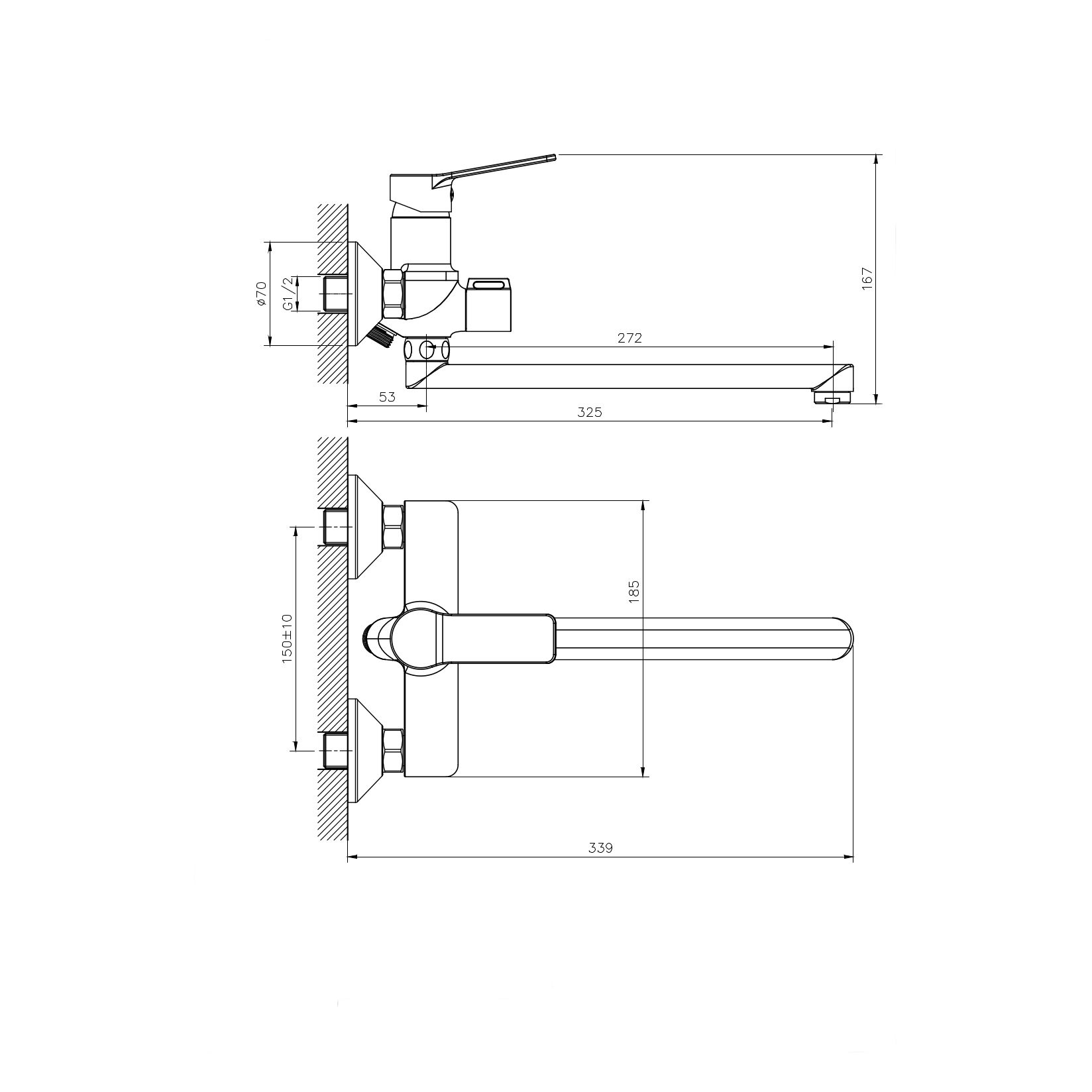 • Высота смесителя: