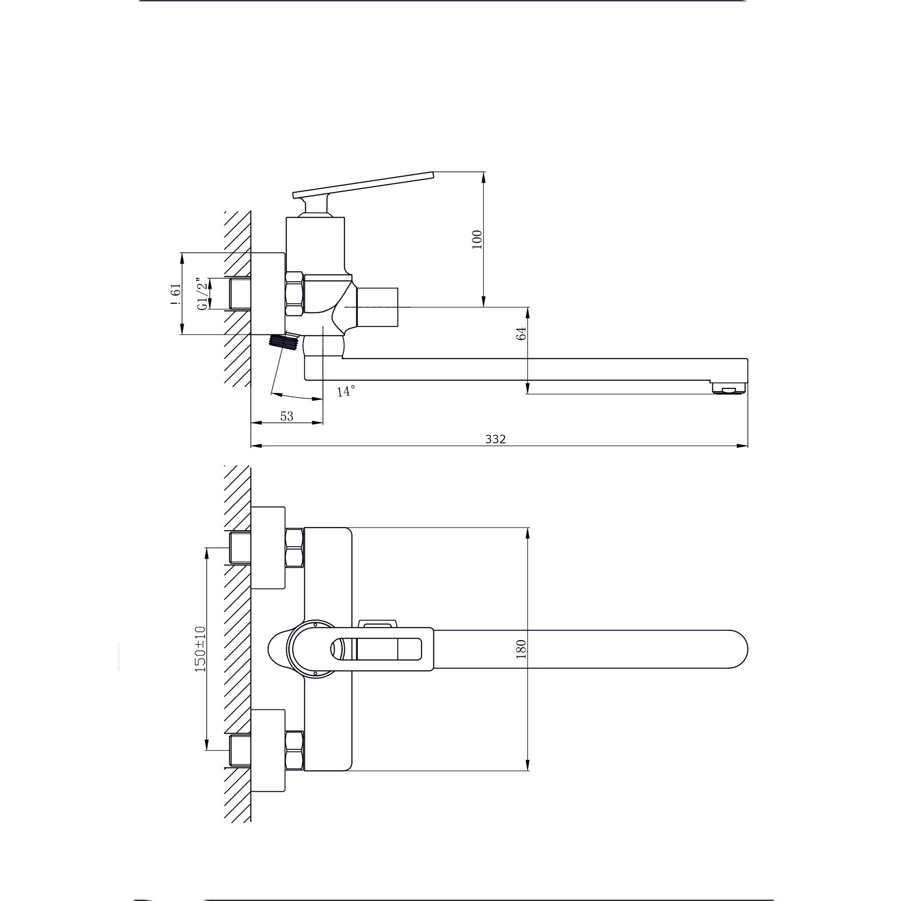 • Высота смесителя: