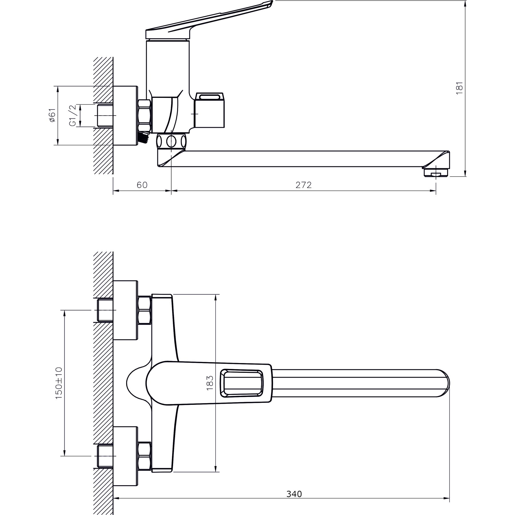 • Высота смесителя: