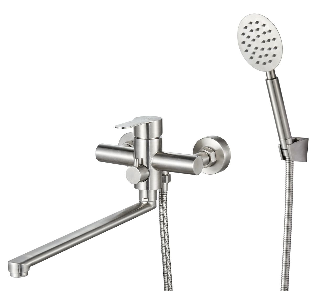 При производстве смесителей ТМ РМС используются только высококачественные материалы. Смесители серии SUS124 выполнены из нержавеющей стали, что является гарантией качества и долговечности, устойчивы к царапинам и перепадам температур, экологичны и безопасны для вашего здоровья, Поверхность не потеряет со временем свой роскошный вид, а уход за ней сводится к протиранию мягкой салфеткой. Установка смесителя крайне проста. Смесители РМС это сертифицированный продукт с 7-летней гарантией. В комплекте идут эксцентрики, отражатели, металлический шланг для душа 1,5м и лейка для душа.