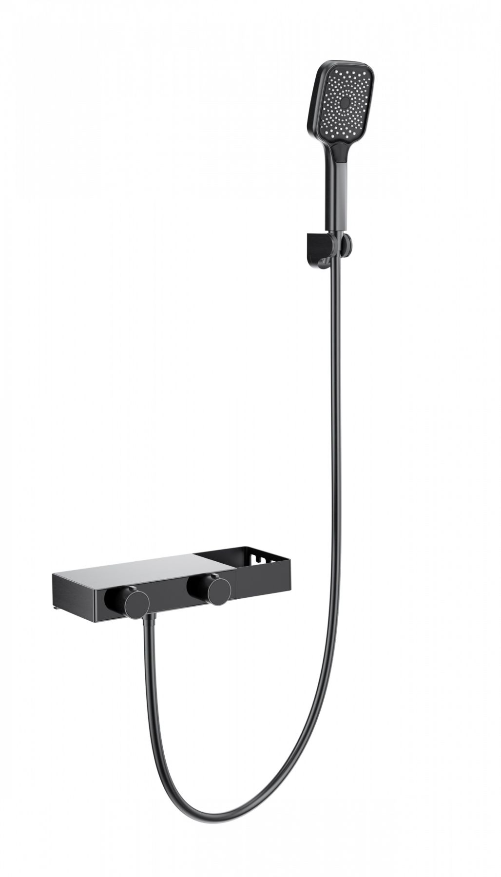 Смеситель для ванны с душем и термостатом WONZON & WOGHAND Shelf, Темный графит (WW-B2551-BGG)