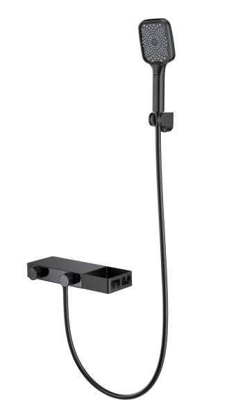 Смеситель для ванны с душем Wonzon & Woghand Shelf WW-B2551-MB с термостатом чёрный матовый