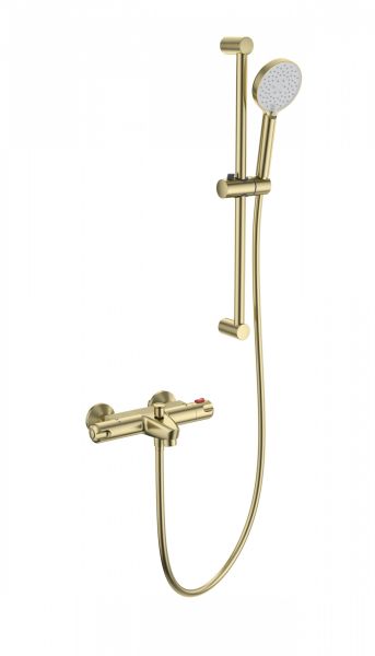 Смеситель для ванны с душевым гарнитуром и термостатом WONZON & WOGHAND, Брашированное золото (WW-C2001-A-BG)