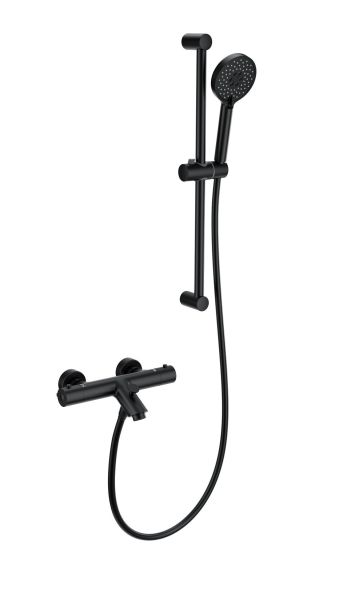 Смеситель для ванны с душевым гарнитуром Wonzon & Woghand WW-C2002-A-MB с термостатом чёрный матовый