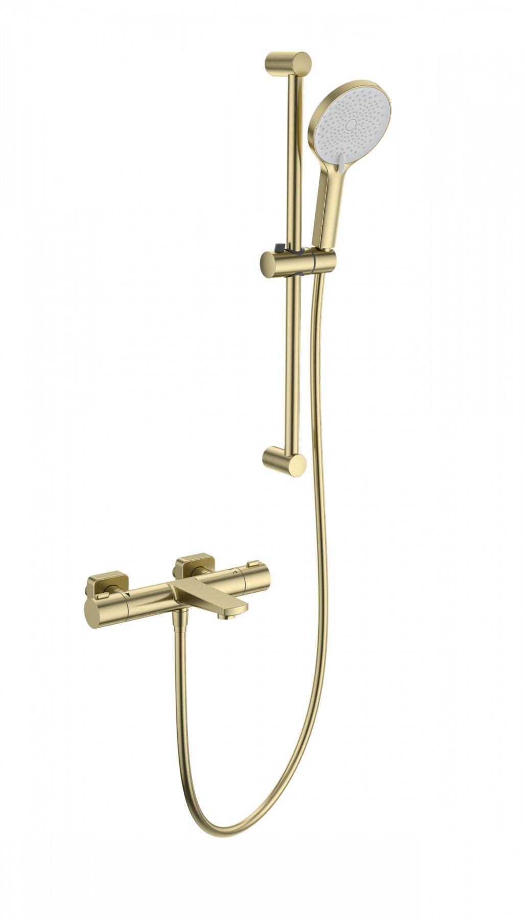Смеситель для ванны с душевым гарнитуром и термостатом WONZON & WOGHAND, Брашированное золото (WW-C2021-A-BG)