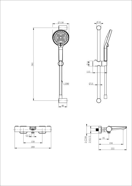 Смеситель для ванны с душевым гарнитуром Wonzon & Woghand WW-C2021-A-BG с термостатом брашированное золото