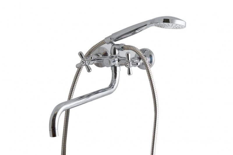 Смеситель для ванны и душа: излив поворотный, керамический картридж, в комплекте эксцентрики и декоративные розетки, выход 1/2 для душевого шланга, шланг 1500 мм, лейка Ø 95 мм. (1 режим).