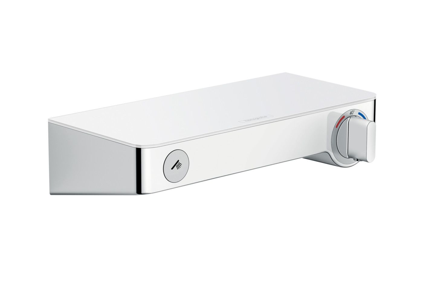 Смеситель Hansgrohe Ecostat Select 13171400 для душа с термостатомХарактеристики продукта:-1 потребитель-предохранительный ограничитель при 40°C-из безопасного стекла-поверхность полочки: хром или белый