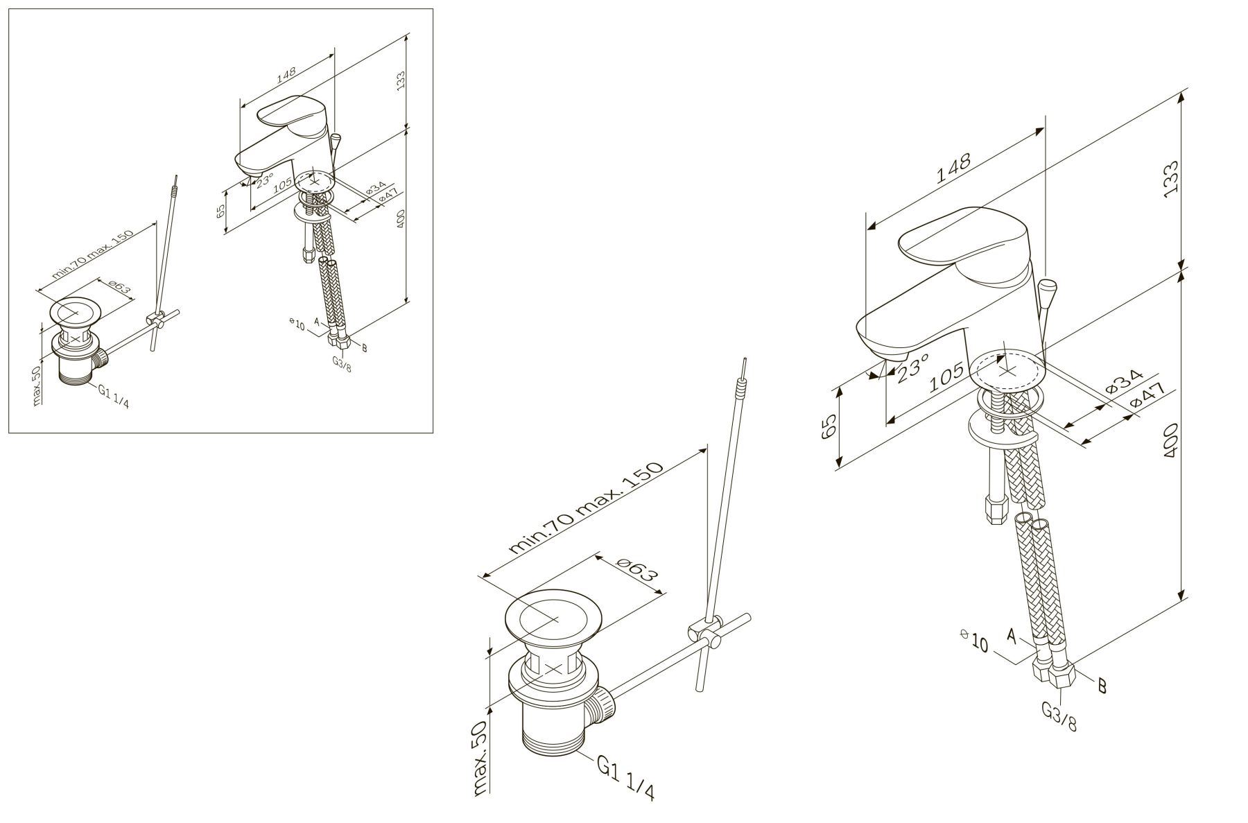 • Высота смесителя: