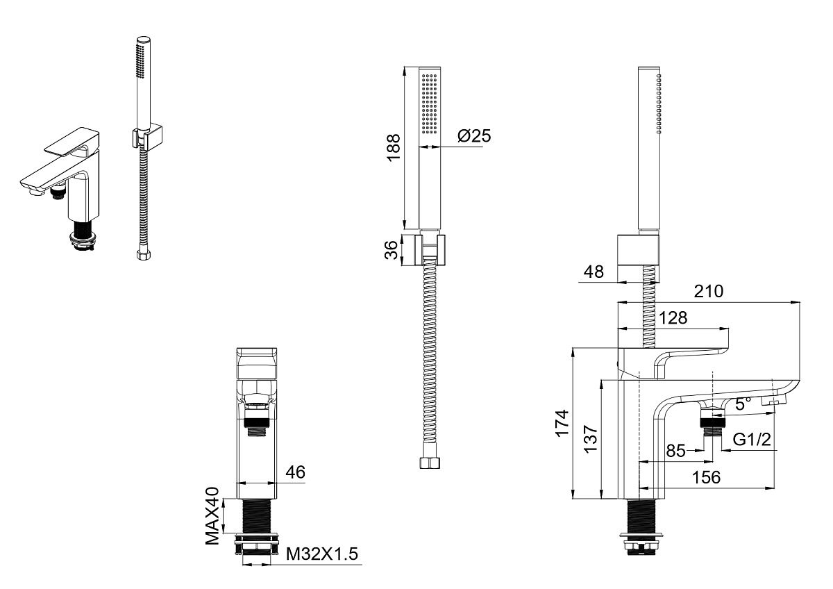 Смеситель на борт ванны Aquatek Вега AQ1044BGM оружейная сталь купить