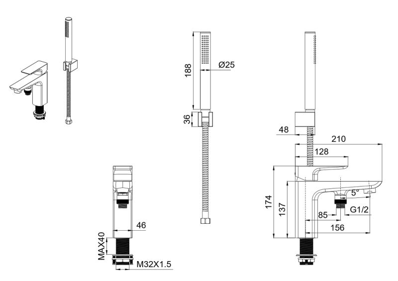 Смеситель на борт ванны Aquatek Вега AQ1044BGM оружейная стальПроизводитель Aquatek