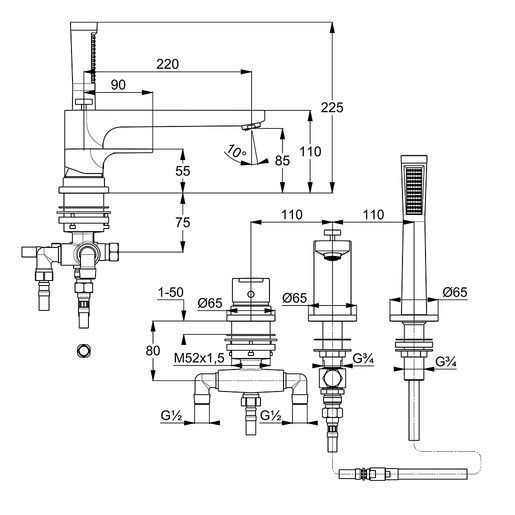 • однорычажный смеситель для ванны и душа DN 15