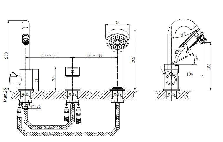 Смеситель на ванны RUSH арт. TE2835-333 из коллекции Tenerife изготовлен из высококачественной латуни и имеет рычажное управление. В смеситель установлен картридж D-35 с керамическими пластинами, а также дивертор с керамическими пластинами. Пластиковый аэратор с нержавеющим корпусом. Высота смесителя 230мм, угол наклона аэратора 35гр, высота излива до аэратора 106мм. В комплекте универсальная присоединительная группа для установки на вертикальную поверхность, однорежимная душевая лейка и душевой шланг длиной 1,5м., держать душевой лейки, нержавеющие эксцентрики фум-лента, индивидуальный пакет, паспорт, гарантийный талон.