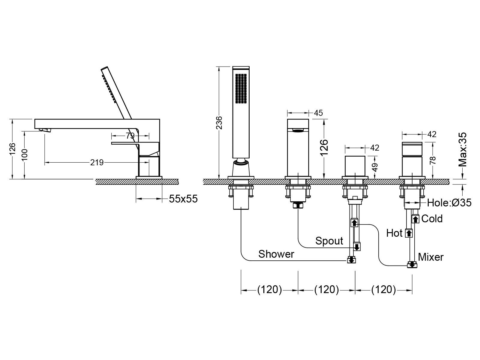 • Отверстия для монтажа: