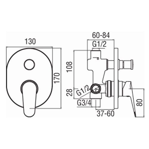 Смеситель Nobili Blues BS101100CR для душа встраиваемый