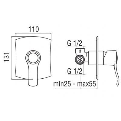 • Встроенный однорычажный смеситель на 1-ходовой