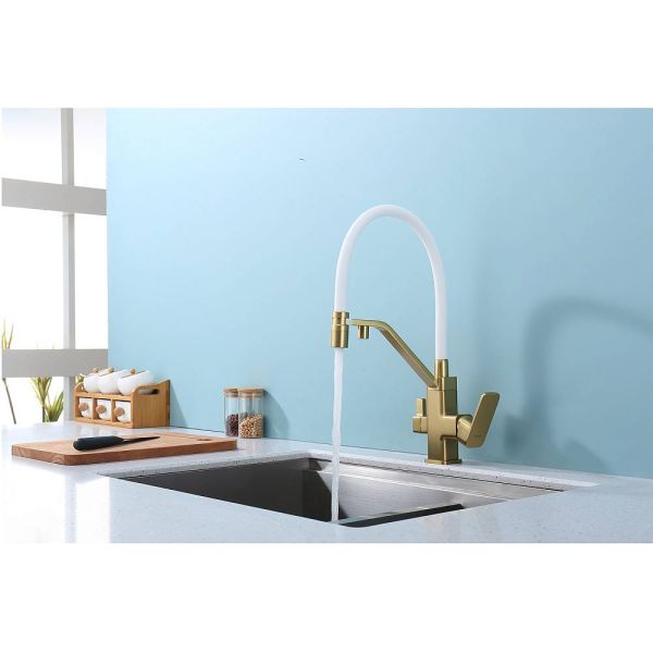 Смеситель Raglo R85.62.03 для кухни с подключением фильтра золотой сатин
