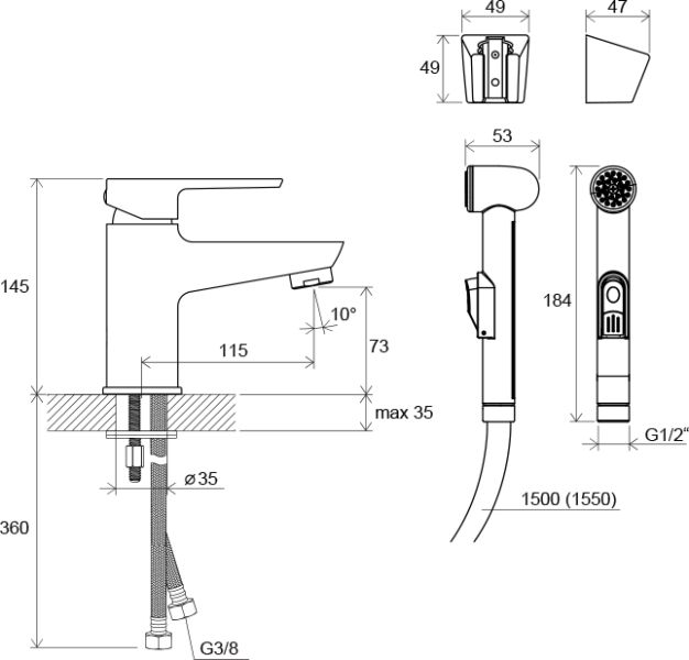 • исполнение: с ручным гигиеническим душем и держателем для стены