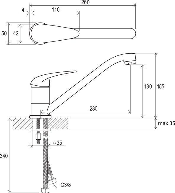 • соединительные шланги: гибкий 350 мм, диаметр G3/8