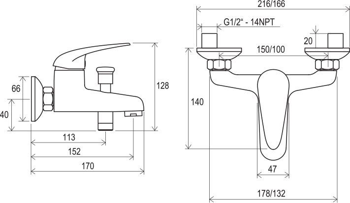 - межосевой размер смесителя : 150 мм