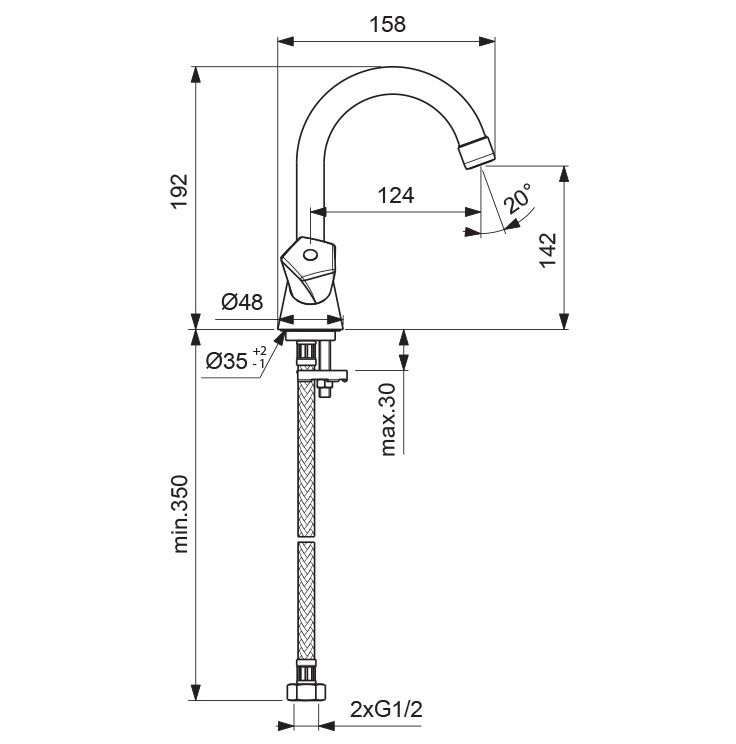 • Высота смесителя: