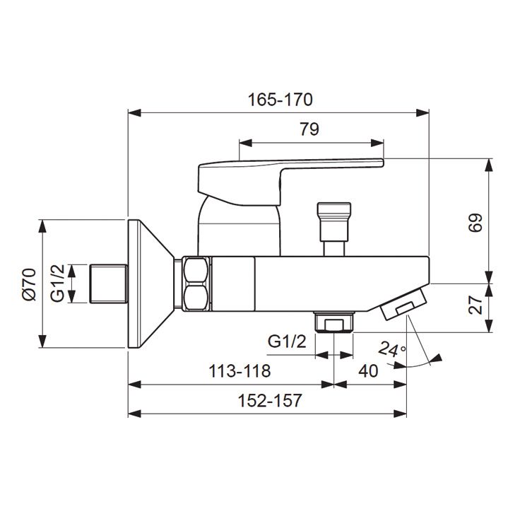 Переключение ванна/душ: ручное (позволяет использовать функцию “душ” даже при очень низком давлении воды)