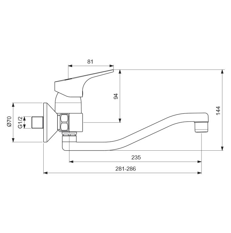 Расстояние от стены до аэратора, мм: 281-286