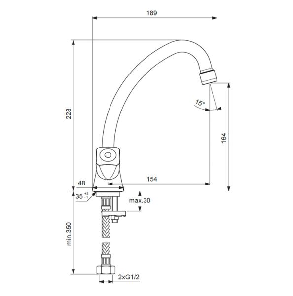 • Высота смесителя: