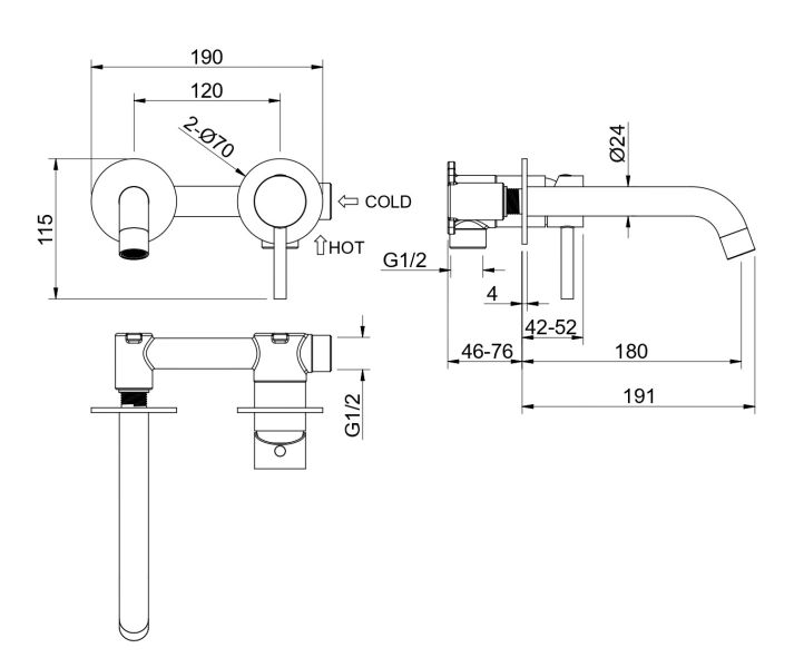 • Смеситель (внешняя и скрытая часть)