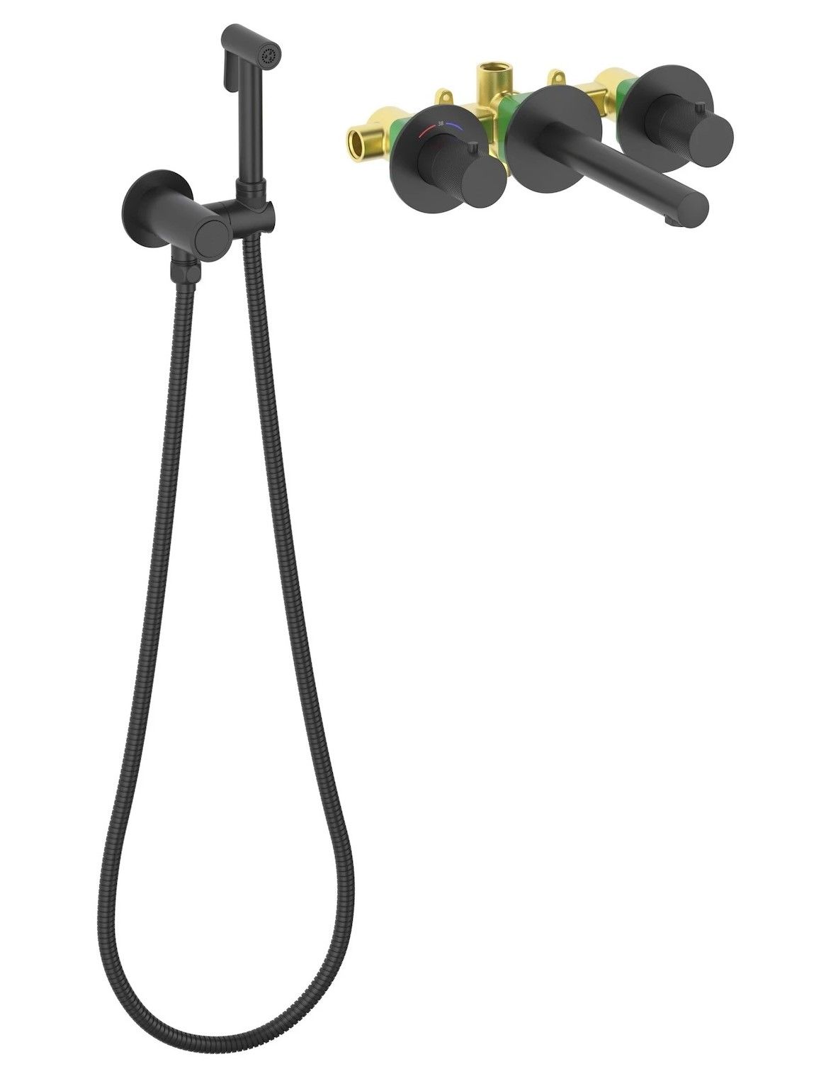 Черная сантехника становится все более популярной для ванных комнат из-за способности расставлять акценты. Встраиваемый смеситель с функцией подключения гигиенического душа Timo Saona 2383 предназначен для монтажа в твердой или полой стене. Встроенныи? блок может быть установлен с левым или правым подключением гигиенического душа. Гигиенический душ можно установить автономно на любом расстоянии от смесителя. Для использования гигиенического душа включать смеситель не требуется. Подача воды на гигиеническую лейку осуществляется нажатием кнопки, расположенной на корпусе держателя лейки. В смесителе установлен термостатический картридж для поддержания стабильной температуры воды в смесителе и гигиеническом душе. Подача воды и увеличение напора в смесителе осуществляется поворотом ручки расположенной справа (при установке душа слева). Сложностей монтажа не возникает при установке смесителя опытным сантехником. Основные преимущества встроенного смесителя: коммуникации, крепления и механизмы спрятаны в стену и видны только декоративные элементы, установить встроенный смеситель можно в любом месте. Внимательно изучите инструкцию по монтажу и эксплуатации. Черная сантехника требует бережного ухода.