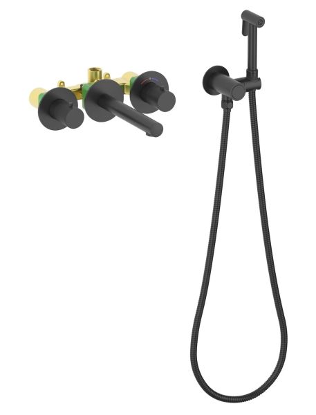 Смеситель встраиваемый для раковины Timo Saona 2383/03SM с гигиеническим душем чёрный купить