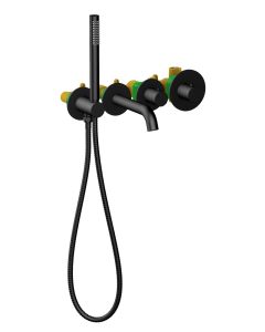 Черная сантехника становится все более популярной для ванных комнат из-за способности расставлять акценты. Встраиваемый смеситель Timo Saona 2324 предназначен для монтажа в твердой или полой стене. Уникальная дизайнерская модель с раздельными горизонтальными блоками, создаст неповторимый современный интерьер в ванной комнате. Основные преимущества встроенного смесителя: коммуникации, крепления и механизмы спрятаны в стену и видны только декоративные элементы, установить встроенный смеситель можно в любом месте. Термостатический картридж поддерживает стабильную температуру воды, обеспечивая максимально комфортные условия для принятия водных процедур. Стильная лейка-карандаш удобна в использовании и фиксируется на держателе с подключением шланга для душа. Регулировка температуры и напора воды осуществляется джойстиком справа. Переключение потока воды с излива на ручную лейку осуществляется поворотом ручки дивертора. Сложностей монтажа не возникает при установке смесителя опытным сантехником. Внимательно изучите инструкцию по монтажу и эксплуатации. Черная сантехника требует бережного ухода.