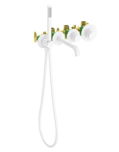 "Белый матовый" цвет - это воплощение идеи элегантности и современного подхода, он выразителен и аристократичен. Смесители белого цвета универсальны и могут сочетаться с аксессуарами и отделкой стен разных цветов. Встраиваемый смеситель Timo Saona 2324 предназначен для монтажа в твердой или полой стене. Уникальная дизайнерская модель с раздельными горизонтальными блоками, создаст неповторимый современный интерьер в ванной комнате. Основные преимущества встроенного смесителя: коммуникации, крепления и механизмы спрятаны в стену и видны только декоративные элементы, установить встроенный смеситель можно в любом месте. Термостатический картридж поддерживает стабильную температуру воды, обеспечивая максимально комфортные условия для принятия водных процедур. Стильная лейка-карандаш удобна в использовании и фиксируется на держателе с подключением шланга для душа. Регулировка температуры и напора воды осуществляется джойстиком справа. Переключение потока воды с излива на ручную лейку осуществляется поворотом ручки дивертора. Сложностей монтажа не возникает при установке смесителя опытным сантехником. Внимательно изучите инструкцию по монтажу и эксплуатации. Уход за такими смесителями самый легкий, на них практически не видны водяные разводы.