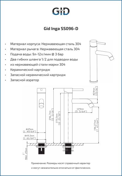 Cascada – Смелый дизайн и нестандартные формы сочетаются с испанским качеством и европейскими стандартами. Эти смесители превращают каждый поток воды в динамичное произведение искусства. Смеситель Inga GID SS096-BM-D — удлиненная модель в стильном черном цвете, созданная для раковин в современных ванных комнатах. Изготовленный из высококачественной нержавеющей стали, он отличается долговечностью и устойчивостью к коррозии. Название «Inga» отсылает к знаменитому водопаду Инга на реке Конго — одному из крупнейших водопадов мира, известному своей мощью и стремительным потоком воды. Эта модель воплощает энергию и силу природы, сочетая функциональность с элегантным дизайном. Комплект: смеситель Inga GID SS096-BM-D; 2 шланга подачи воды, дополнительные аэратор и керамический картридж; шестигранный ключ.