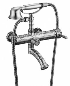 Винтажный стиль смесителя отлично дополнит классический интерьер Вашей ванной комнаты. Сочетание необычной формы и рельефного рисунка делают изделие уникальным, не похожим на другие.